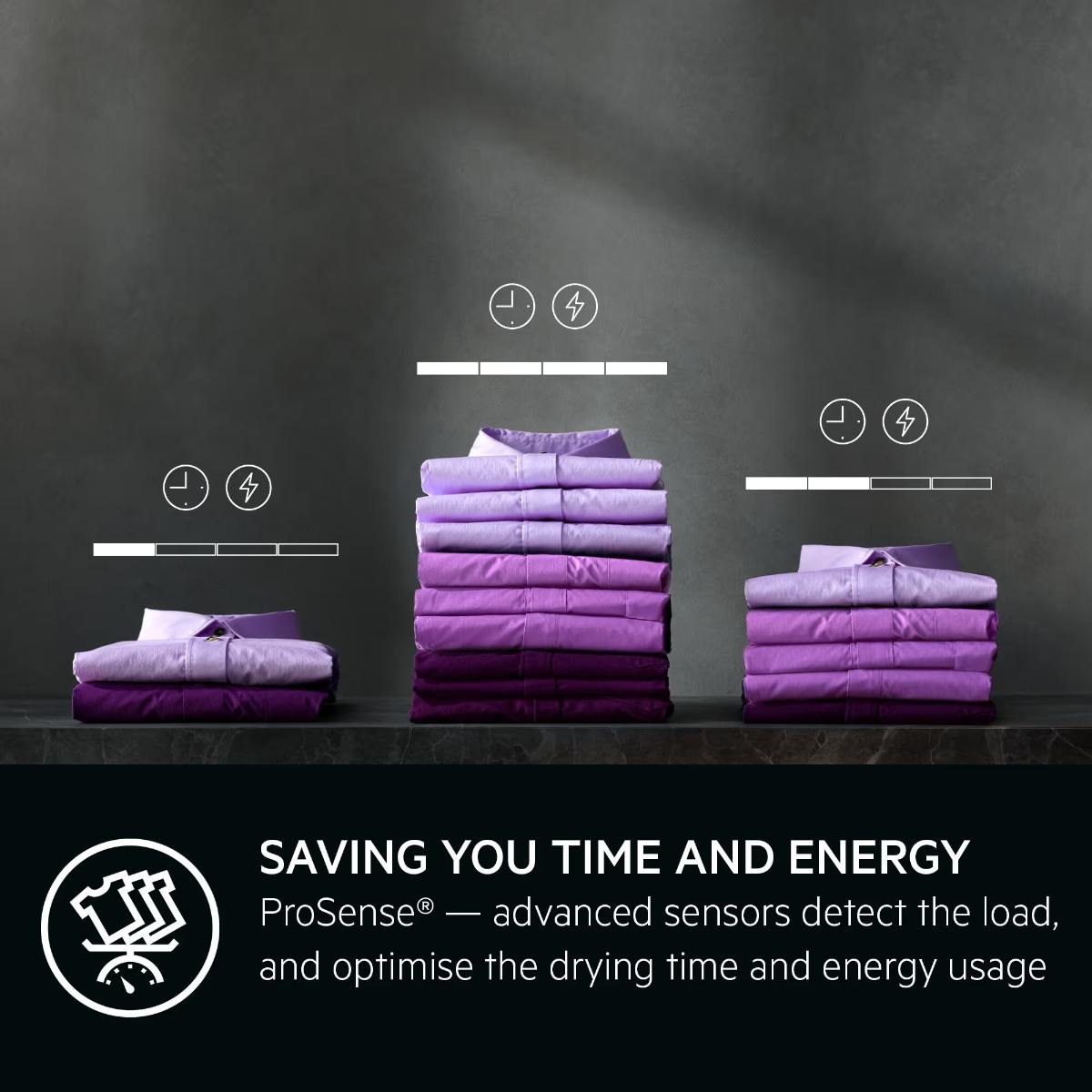 - SensiDry®-teknologi – Tørker klær jevnt ved lav temperatur uten å forlenge tørketiden.