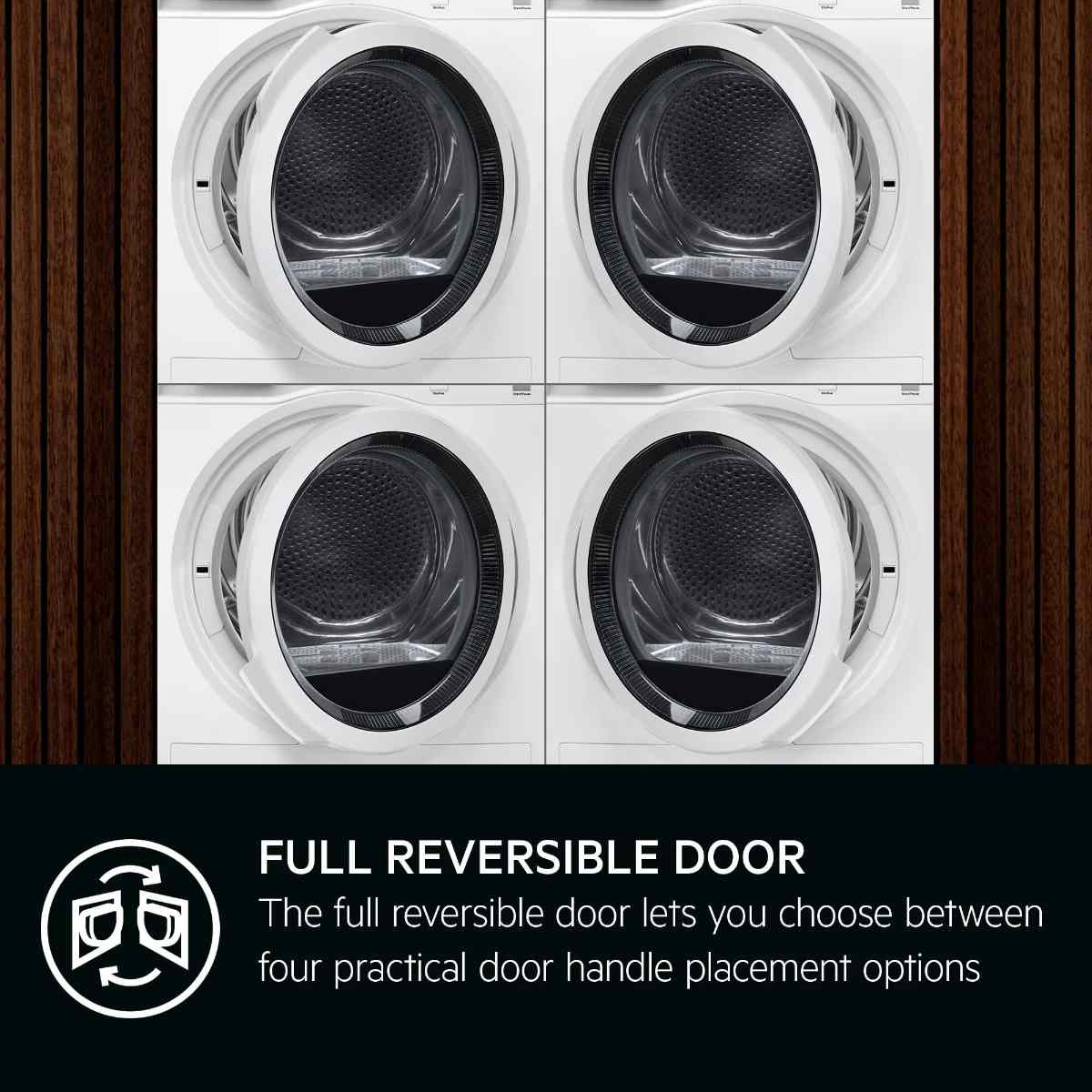 - AntiCrease-funksjon – Trommelen roterer i begge retninger for jevnere tørk og færre rynker.