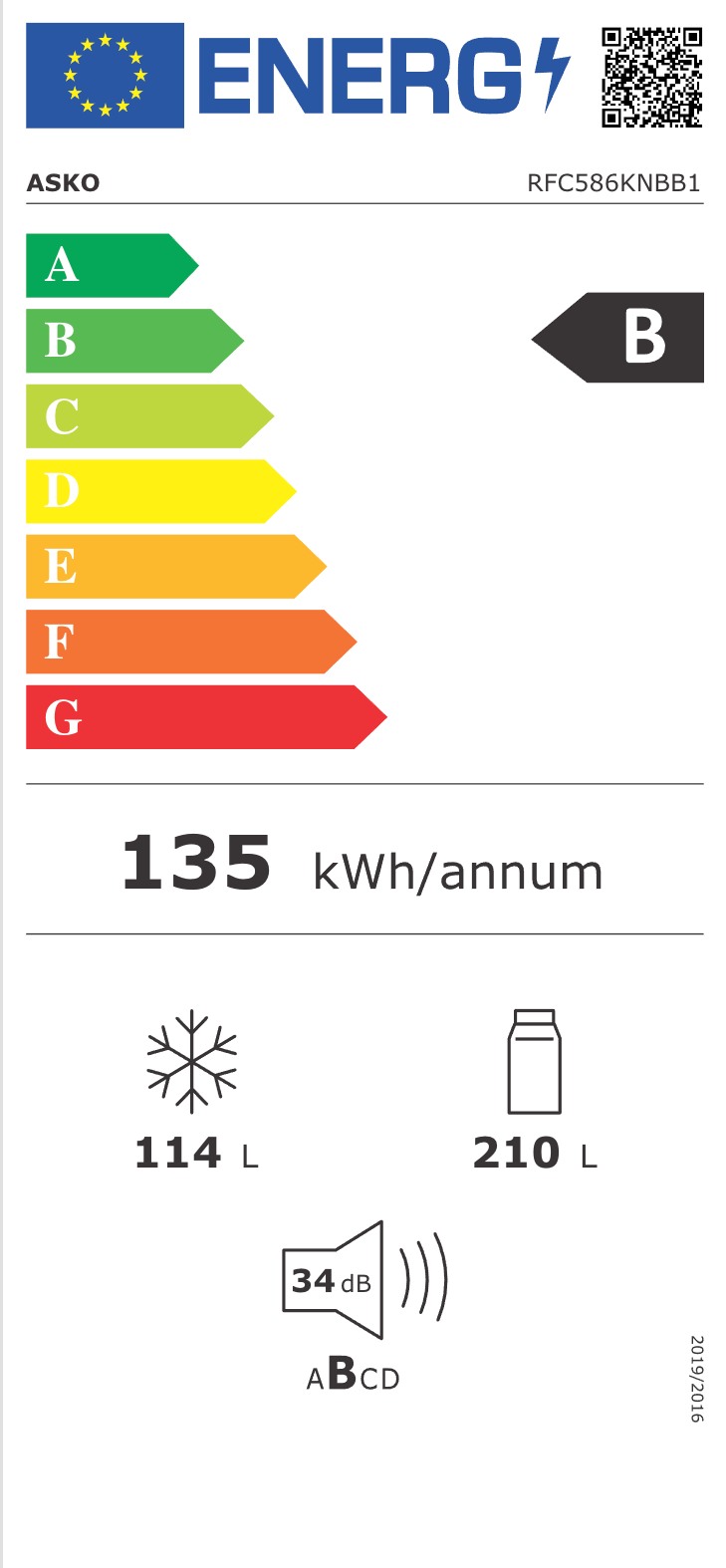 - 210 l kjøl, 114 l frys