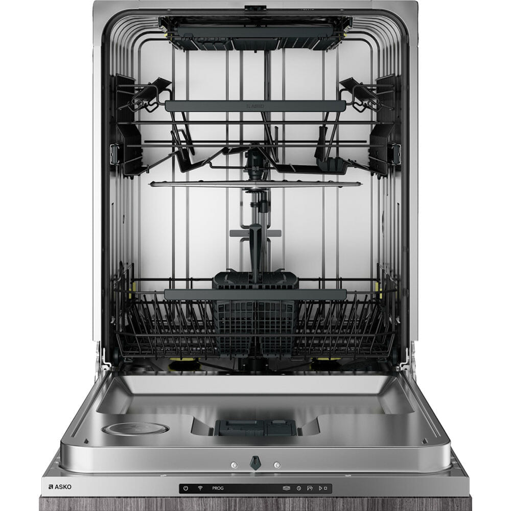 ASKO DFI544DXXL oppvaskmaskin er en del av Logic-produktlinjen, og er helintegrert med dør-til-dør-løsning. Når maskinen er i bruk, viser Status Light™-indikatorlyset i nedre høyre hjørne statusen til gjeldende program. Etter vaskeprogrammet åpnes apparatdøren automatisk, og leder dampene ut av maskinen.