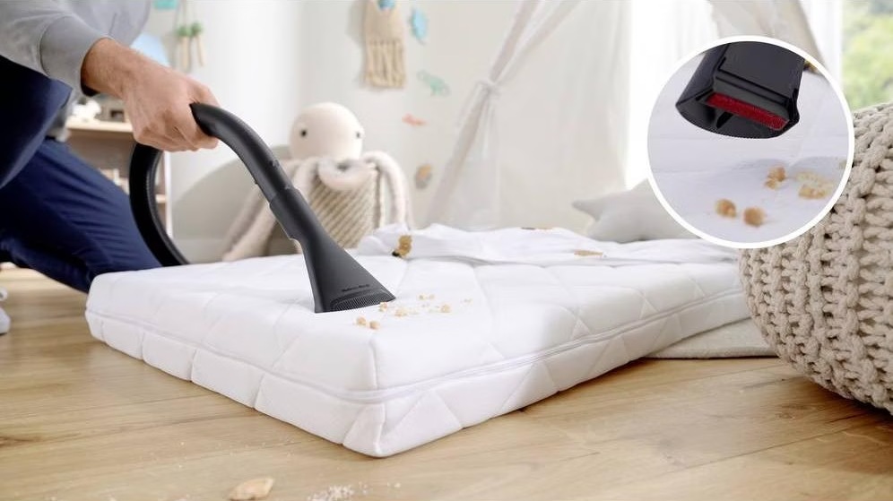 Leveres med praktiske munnstykker for ulike overflater og spalter som når vanskelig tilgjengelige steder. Passer til trapp, møbler og bilinteriør.