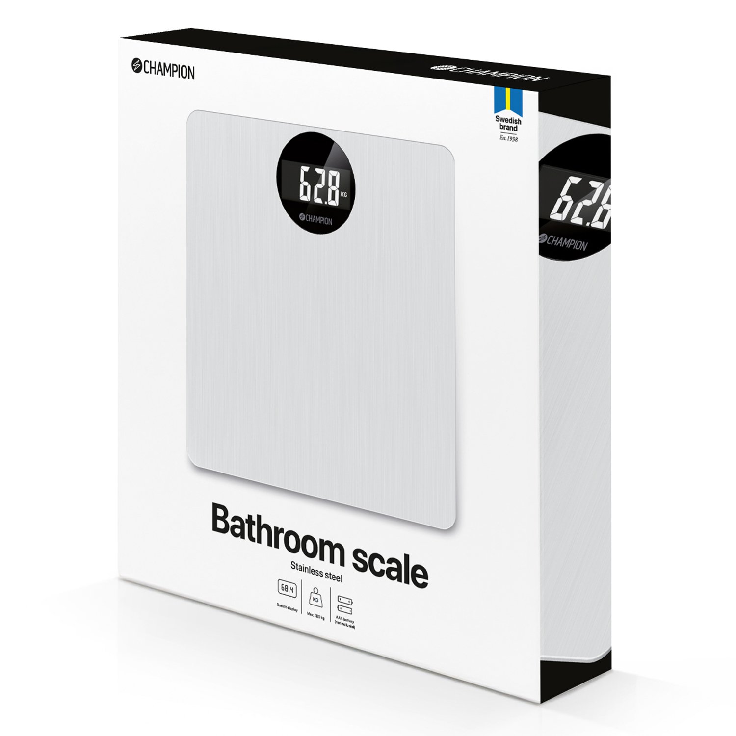 Stilig personvekt i rustfritt stål fra Champion, designet for det skandinaviske hjemmet. Det rustfrie stålet er behandlet med et anti-fingeravtrykksbelegg som gir vekten en fin glans og er enklere å holde ren og ryddig. Med et opplyst display som har tydelige tall, kan du enkelt se resultatet uavhengig av lysforhold. Vekten veier opptil 180 kg med en følsomhet på 0,1 kg.