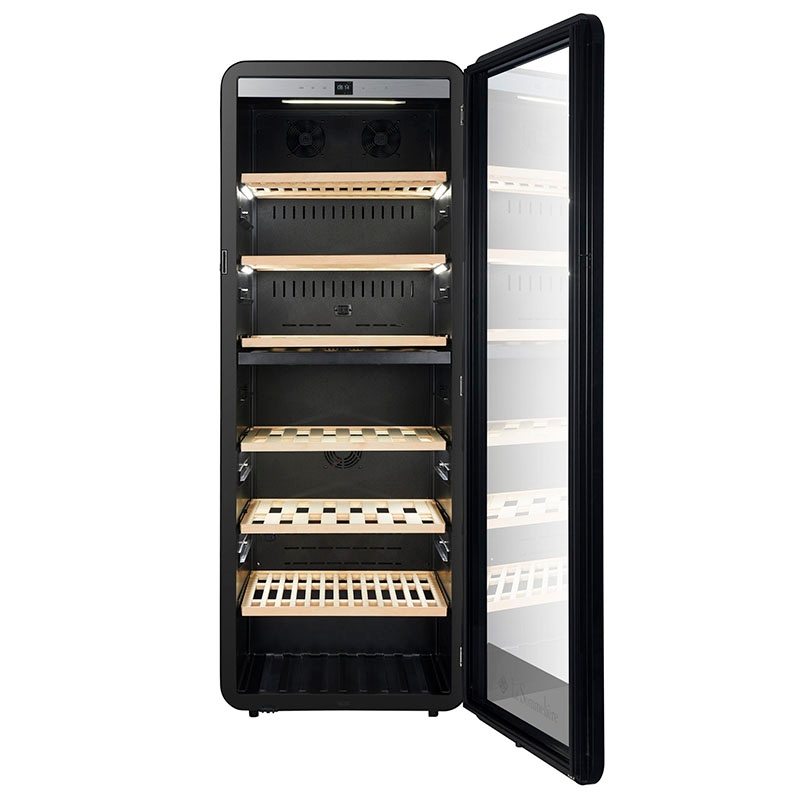 APOGEE250DZ gjenskaper lagringsforholdene til en naturlig vinkjeller: Temperaturstyring med elektronisk termometer; filtrerings- og ventilasjonssystem (aktivt kullfilter); fuktighetsnivå kontrollert mellom 50 og 80 %; beskyttelse mot lys og vibrasjoner sikrer optimal modning av vinene dine.