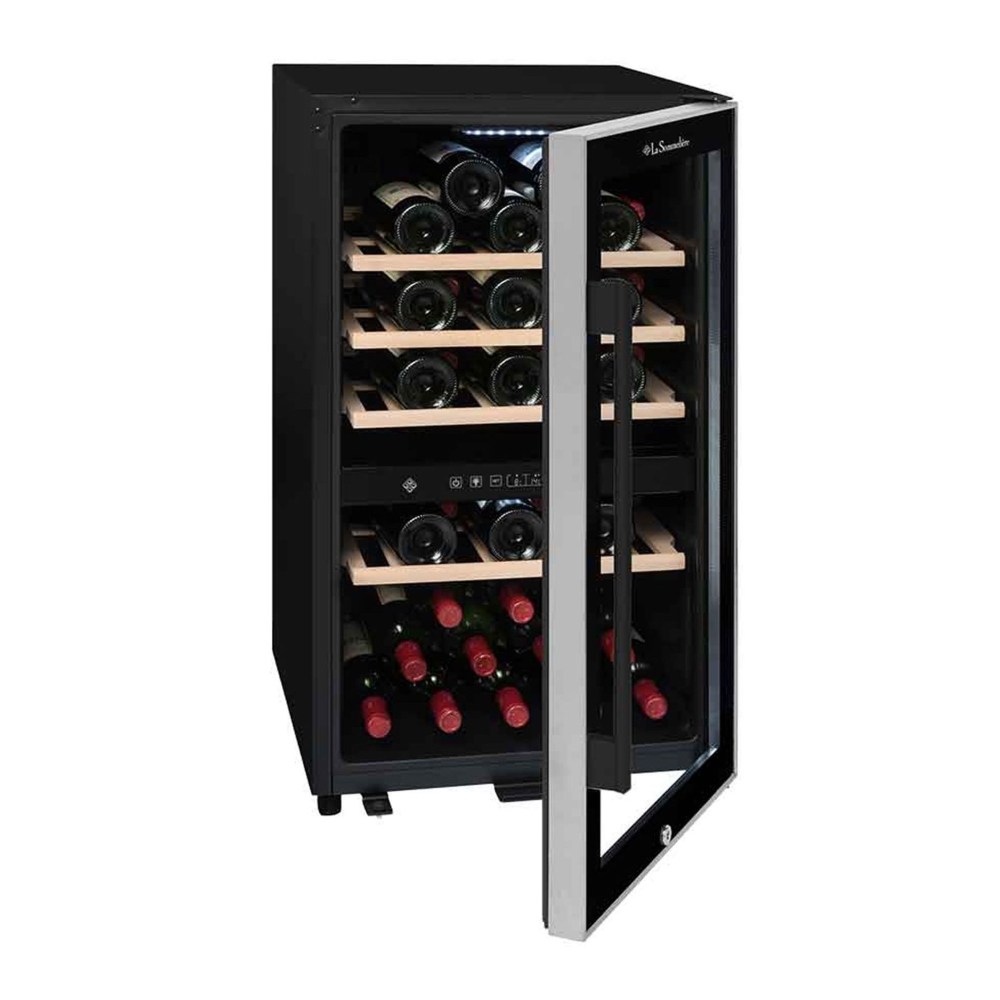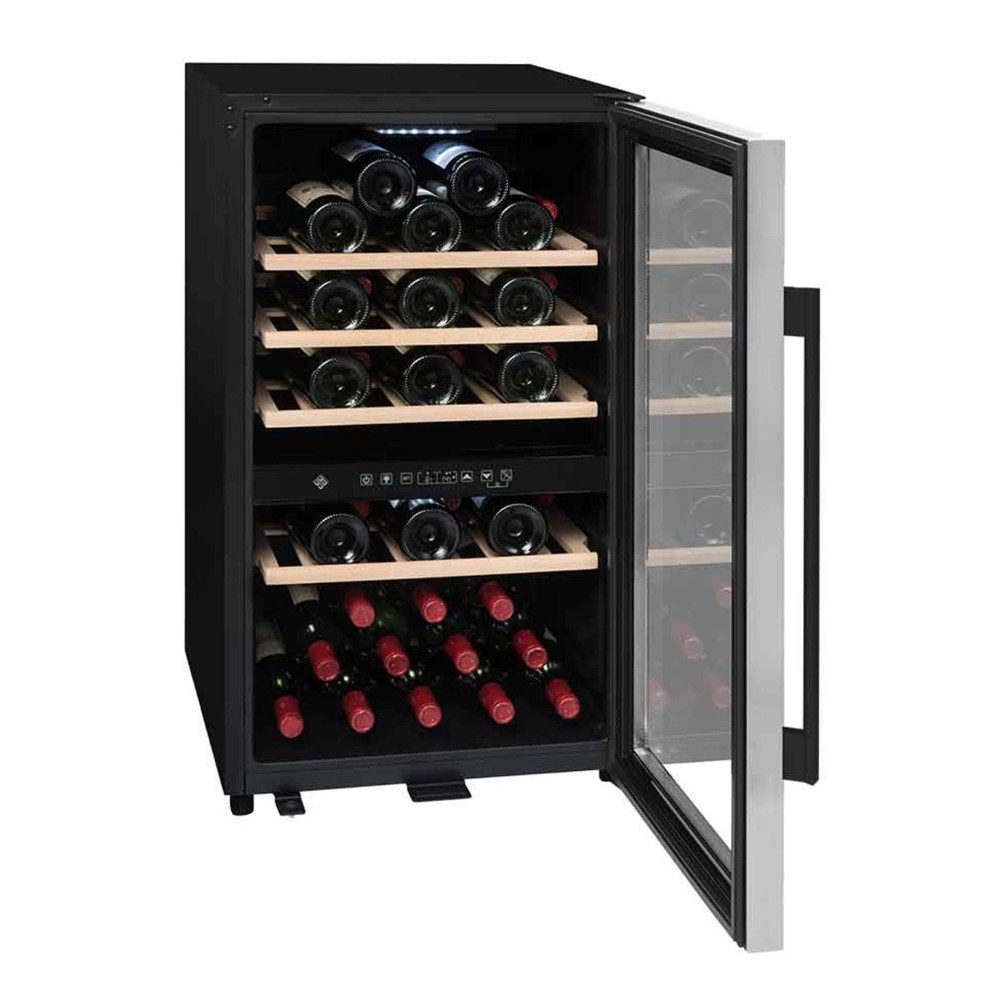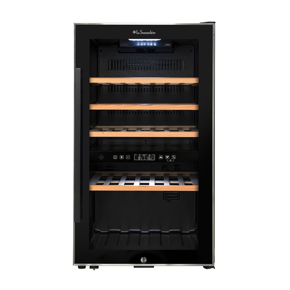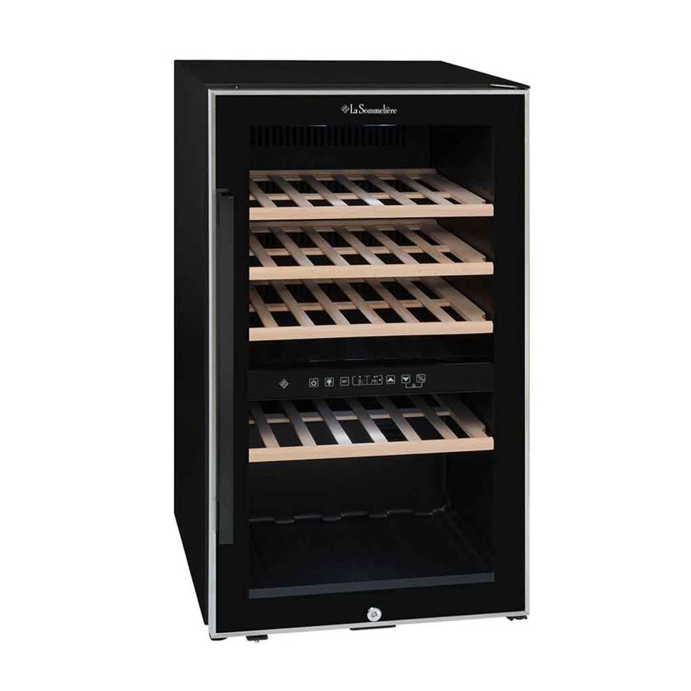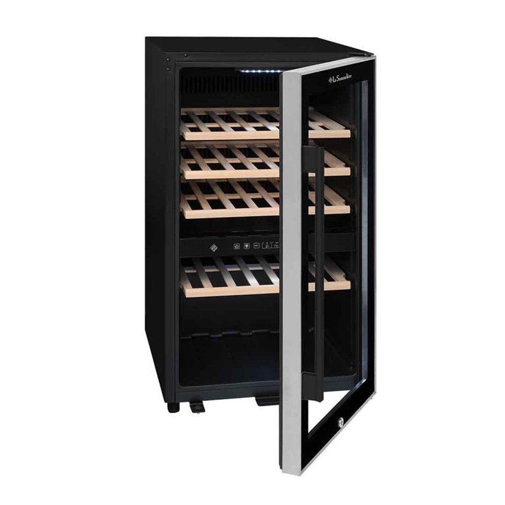 Frittstående vinskap fra franske La Sommeliere med kapasitet for opptil 49 flasker (Bordeaux). Lagre og organiser vinsamlingen din i to separate soner hvor temperaturen justeres uavhengig av hverandre.