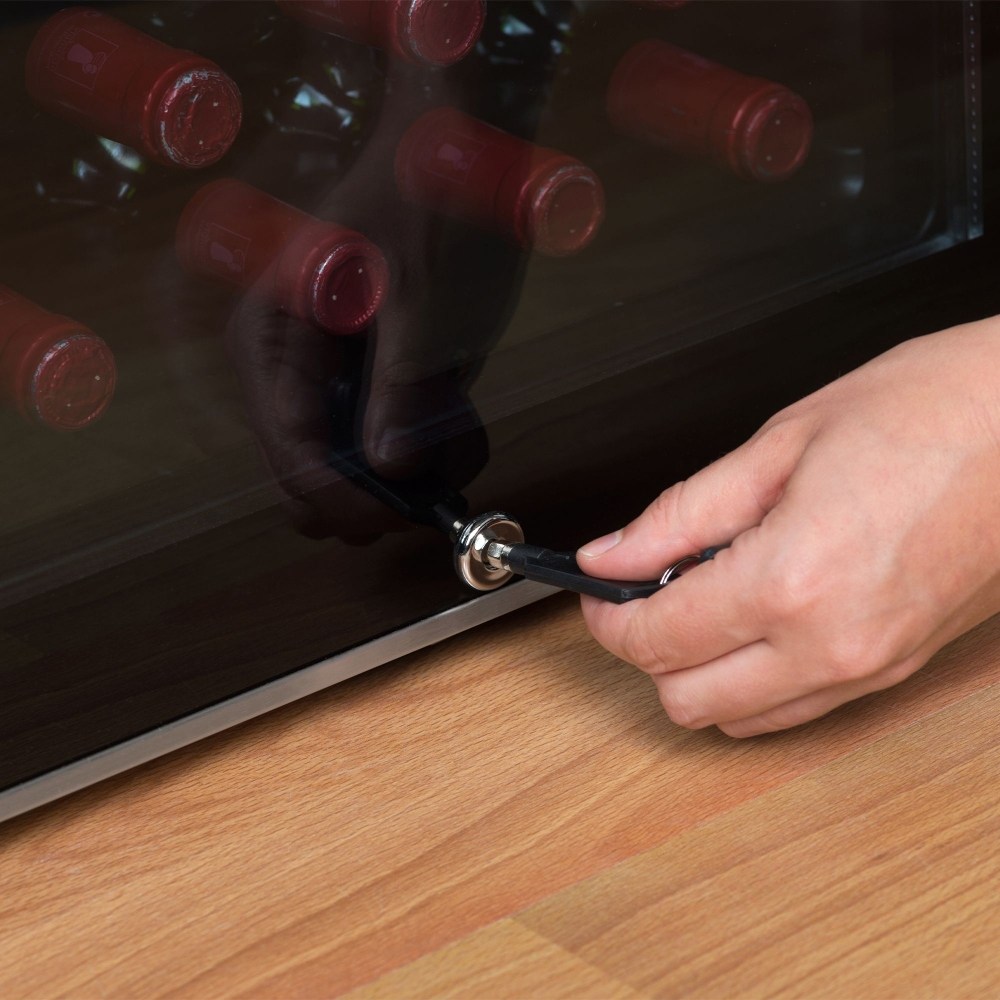 Trendy design med detaljer i rustfritt stål som vil passe inn i de aller fleste hjem.Vinskapet er utstyrt med UV-beskyttet glassdør, trehyller, håndtak i svart stål, Wi-Fi for å styre temperatur og belysning, samt mulighet for å låse inn vinsamlingen.