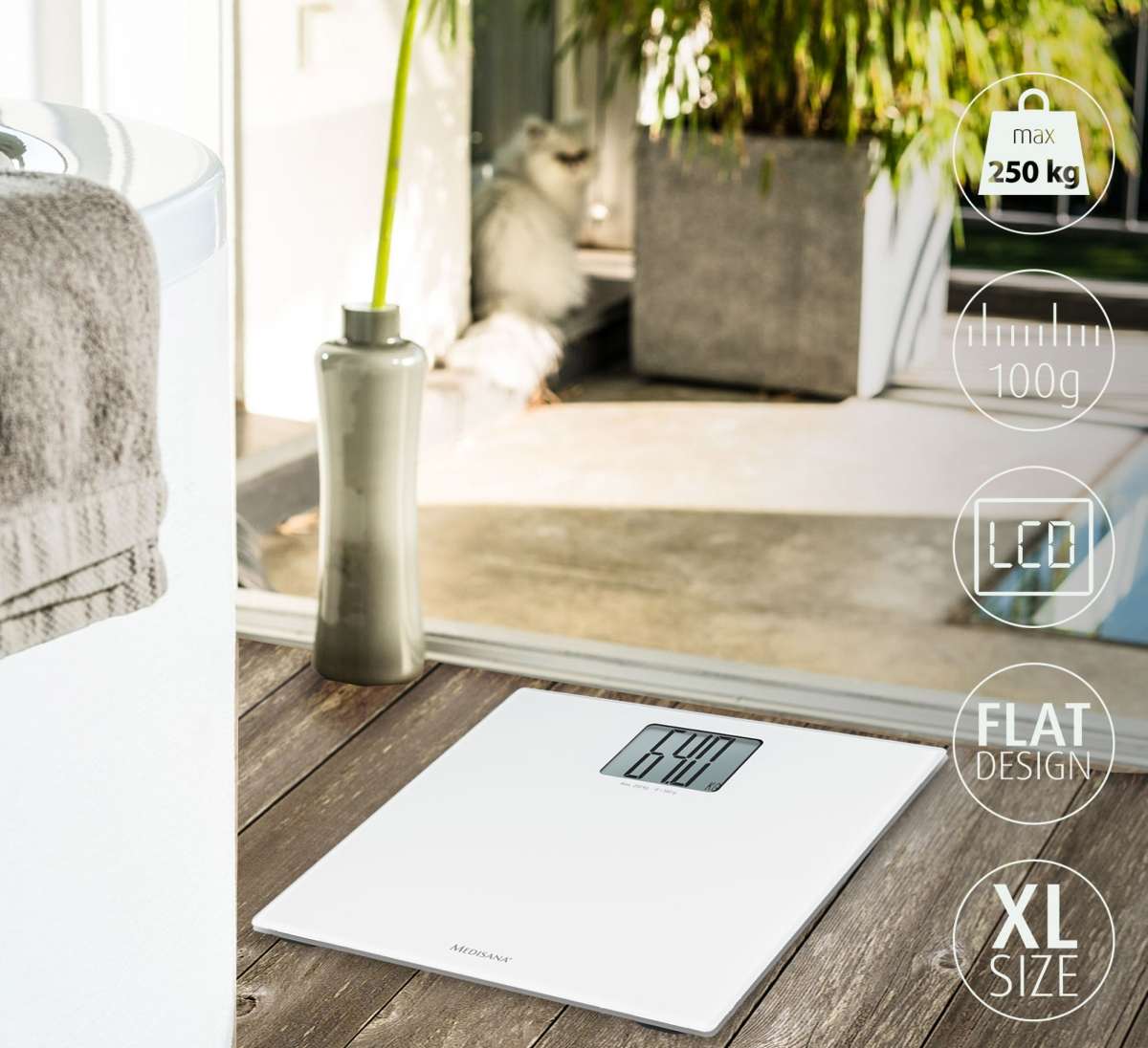 Vekt med ekstra stort LCD-display og store tall. Vekten har en maksimal kapasitet på inntil 250 kilo. XL-formatet gjør det enkelt å lese vekten i displayet. Vekten også praktisk for eldre på badet. Fire sensorer med høy presisjon sikrer nøyaktige måleresultater. Din vekt vises i displayet i 7 sekunder etter at du gått av vekten.