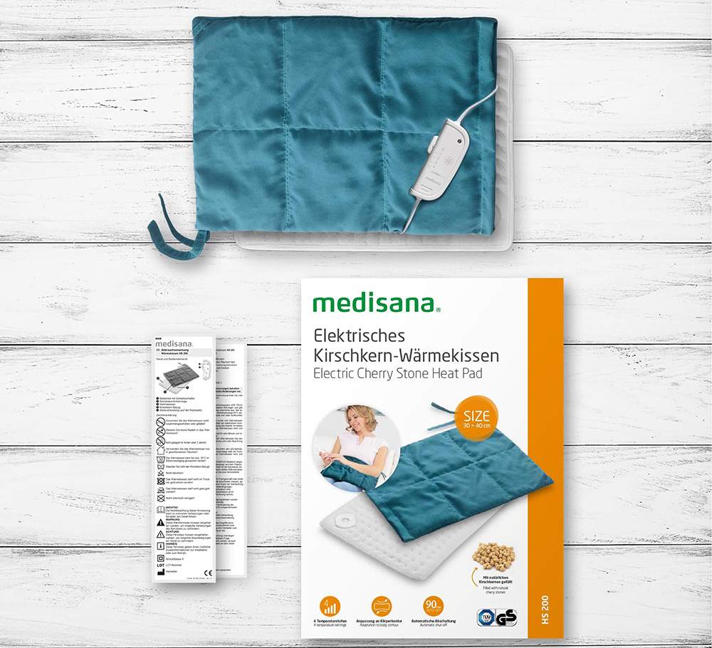 Varmeputen HS 200 imponerer med sin praktiske 3-i-1-varmefunksjon, da den kan brukes samtidig som elektrisk varmepute, kirsebærsteinspute og i kombinert bruk. Kirsebærsteintrekket kan også varmes opp separat i mikrobølgeovnen. Takket være APS-teknologien (Active Protect System) har varmeputen en optisk og akustisk temperaturkontroll. Den praktiske automatiske avstengingsfunksjonen sikrer automatisk avstenging etter 90 minutter.