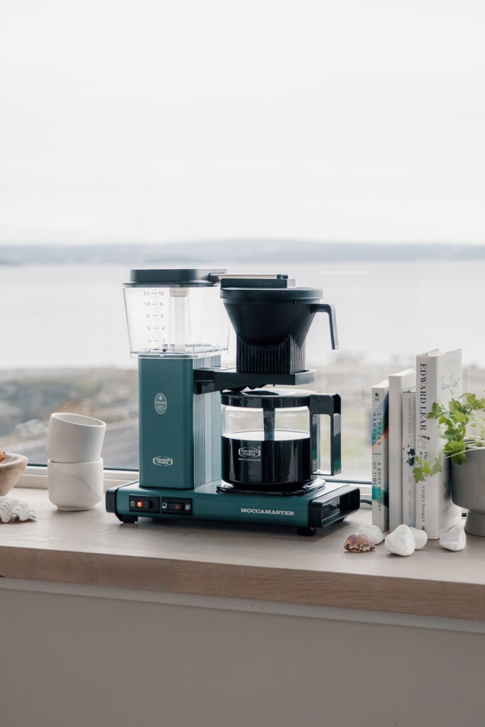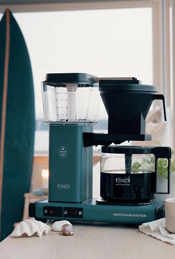 Moccamaster Ocean er en eksklusiv farge inspirert av havet. Ta følelsen av å nyte en nytraktet kopp kaffe ved sjøen inn i hjemmet ditt. Denne modellen har alle tilgjengelige funksjoner, inkludert automatisk dryppstopp, auto-off og den unike Optio-funksjonen for en tilpasset trakteopplevelse