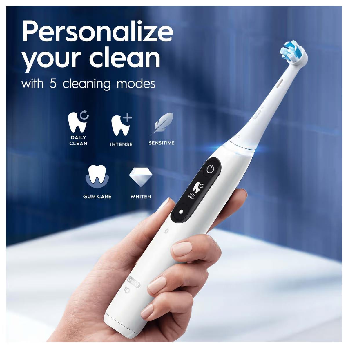 Tilpass dine muntlige rutiner med de fem børstemodusene som tilbyr moduser for daglig- eller intensiv rengjøring, bleking, sensitiv eller supersensitiv.
