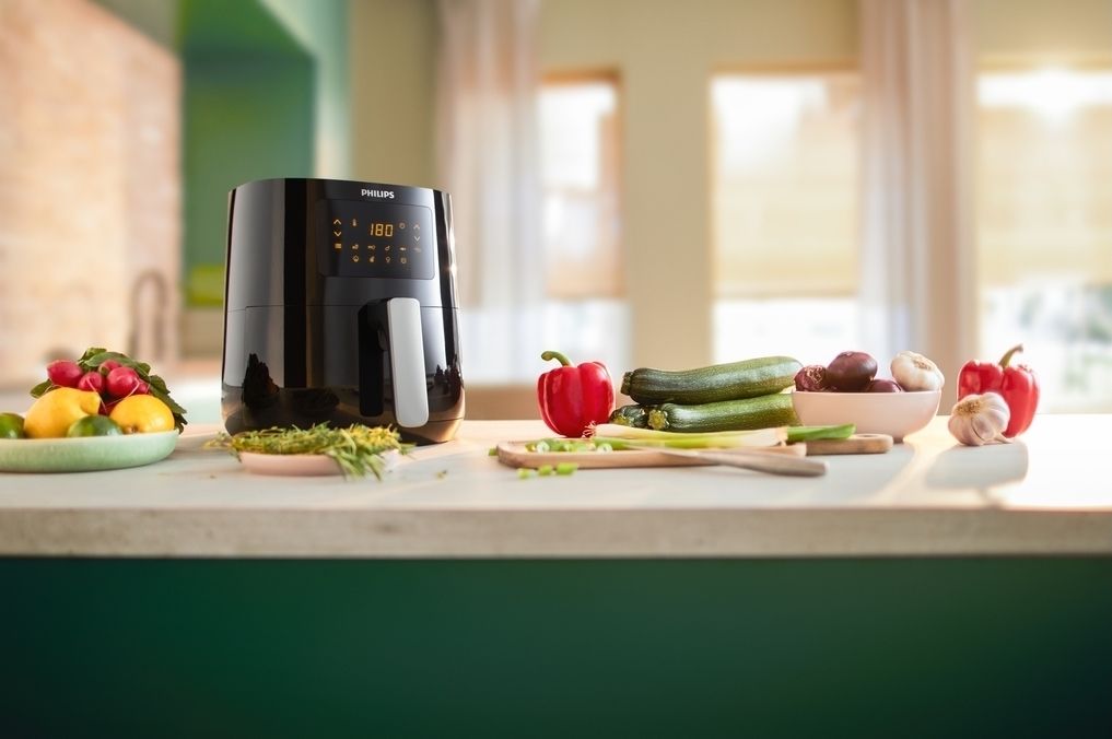 Philips Airfryer tilbyr 7 tidsbesparende forhåndsprogrammer som du kan velge og stille inn på berøringsskjermen, samt en hold-varm-funksjon som varer i 30 minutter. Du får tilberedt mat effektivt med et 4,1 liters kokeområde med en 0,8 kg stekekurv.