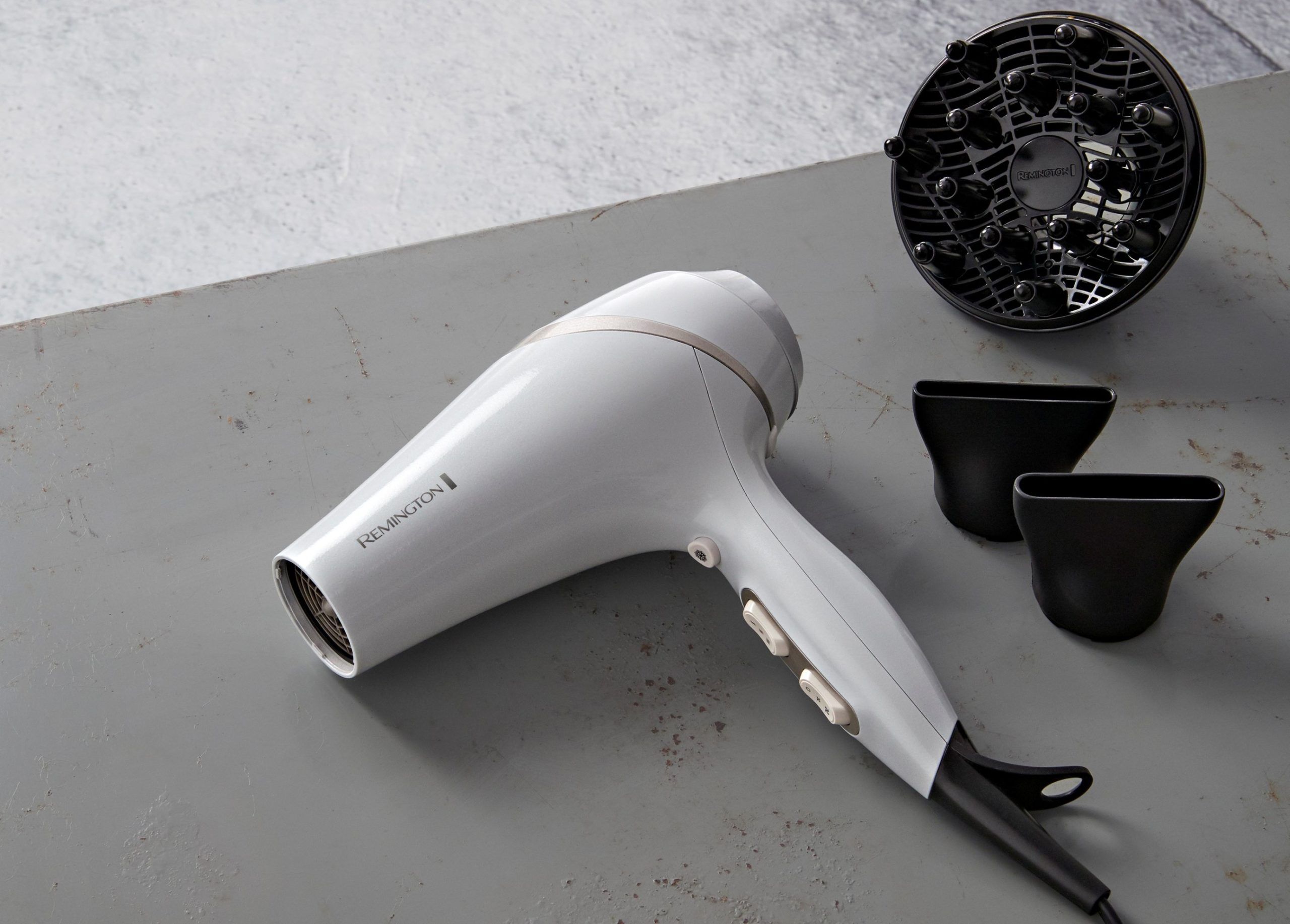 Remington hårføner HYDRAluxe AC8901 er en hårføner med fuktbevarende teknologi. Mikrobalsam tilføres håret under føning og gir fuktbevarende beskyttelse. Stillegående AC-motor. Hydracare innstilling gjør at håret beskyttes mot høye temperaturer og gir en trygg styling. AC-motor på hele 2300W og en lufthastighet på 130 km/t.
