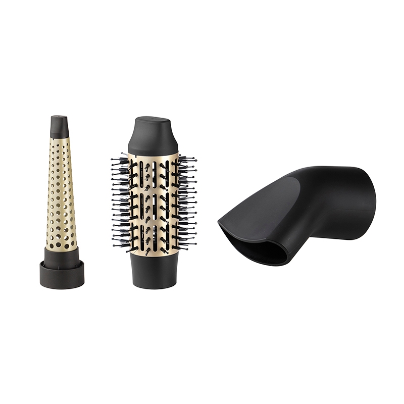 3x stylingtilbehør: Tørkekonsentrator, 50 mm keramisk belagt børste med blandet bust og konisk keramikkbelagt krøllestav. 1000watt. Ionisk kondisjonering. 2 varme/hastighetsinnstillinger. Kaldluft. Avtakbar grill, lett å rengjøre. Svingbar ledning. Opphengsløkke.