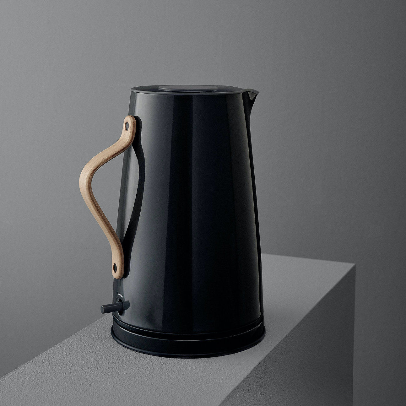 Emma vannkoker er en estetisk tiltalende grå stålkanne med et håndtak i bøketre som gir kannen et karakteristisk nordisk utseende. Den trådløse vannkokeren rommer 1,2 l og leveres med et avtakbart kalkfilter, sikkerhetsbryter for tørrkoking og slår seg av automatisk når vannet har kokt.
