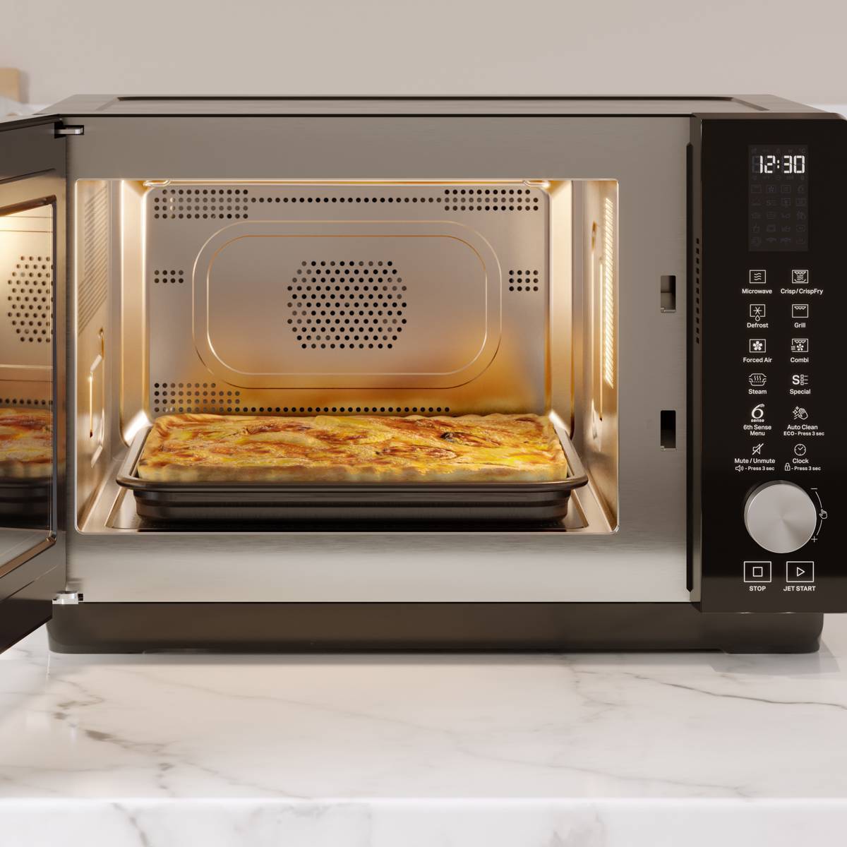 Denne frittstående mikrobølgeovnen fra Whirlpool har følgende funksjoner: Grillfunksjon. Crisp-funksjon, for utrolig sprø quiche, pizza og paier. Jet Defrost, superrask og jevn opptiningsfunksjon.