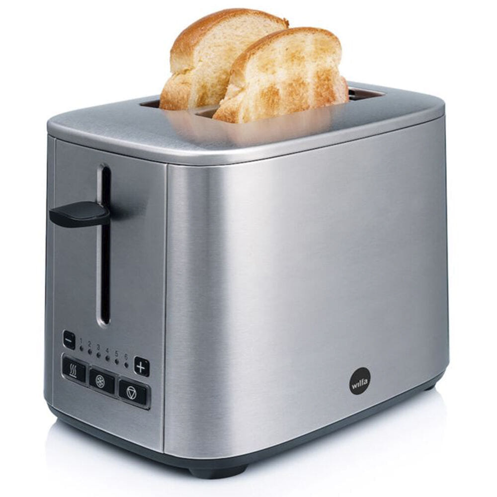 Brødristeren er laget i holdbart rustfritt stål noe som gir lang levetid.