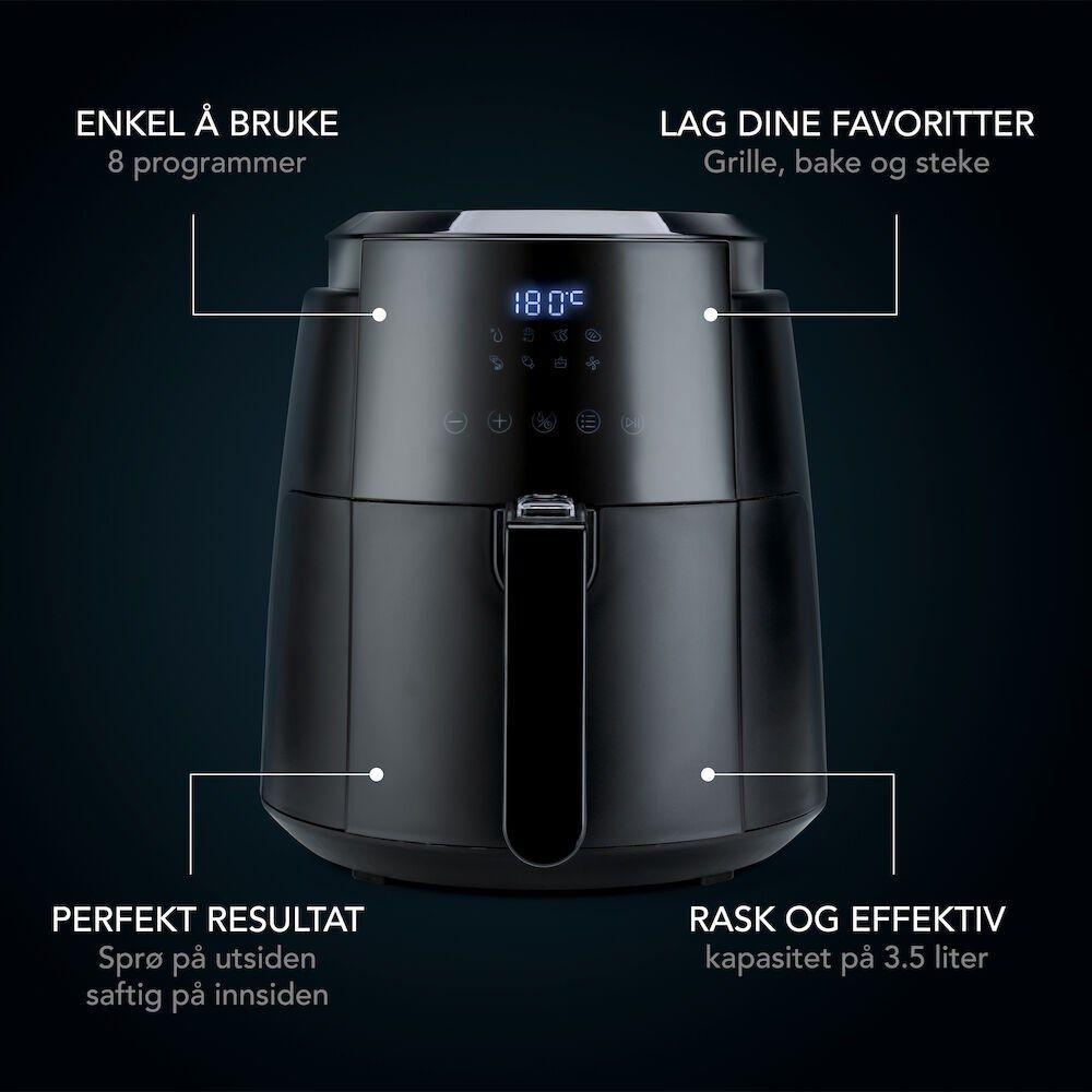 Airfryer bruker luft for å få det samme sprø resultatet som fritering i olje. Du kan lage en rekke forskjellige matvarer, ikke bare middag, men også dessert. Bare fantasien setter grensene.