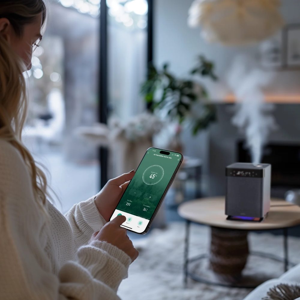 Med WiLife-appen får du full kontroll over luftfukteren. Se luftfuktigheten i sanntid, få varsler når det er tid for påfylling, og planlegg når luftfukteren skal være aktiv for maksimal komfort. Kompatibel med både Google Assistant og Amazon Alexa for enkel integrering i ditt smarthjem.