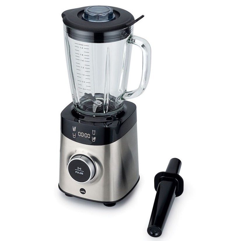 Det følger med en praktisk matstapper som skal brukes til å stappe ned og røre i ingrediensene i kolben, også når blenderen er i gang.