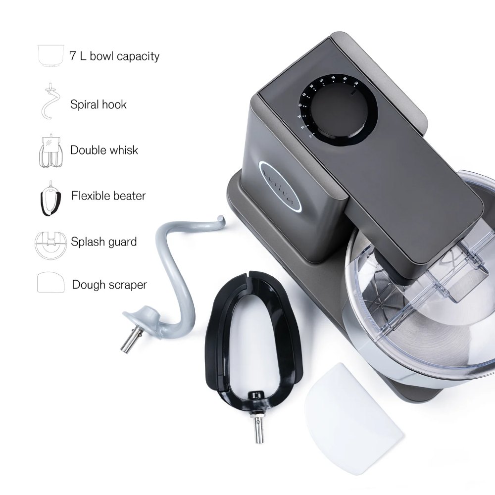Den unike eltekroken er optimalisert for å utvikle gluten i deigen effektivt, og den har minimal avstand til bollen for å sikre at du får alle ingrediensene eltet uten at deigen klatrer på kroken.