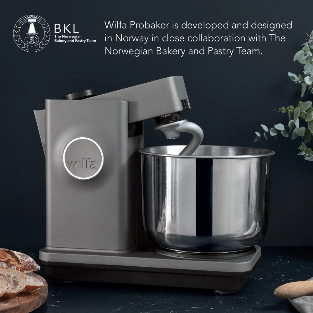 Kjøkkenmaskinen Probaker leverer optimale bakeresultater for den kompromissløse bakeren. Det tok 5 års utvikling sammen med det norske bakelandslaget for å finne de beste løsningene. Det resulterte i en kjøkkenmaskin med høy kapasitet, spesielle eltesystem og unikt tilbehør, samt en stillegående maskin som står stødig.